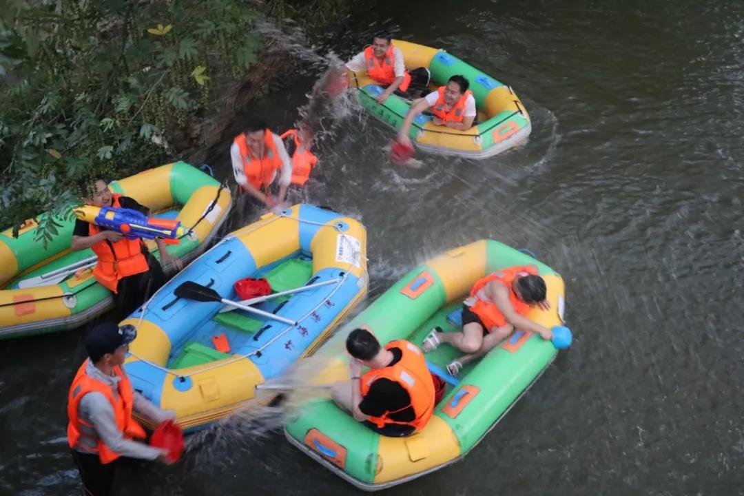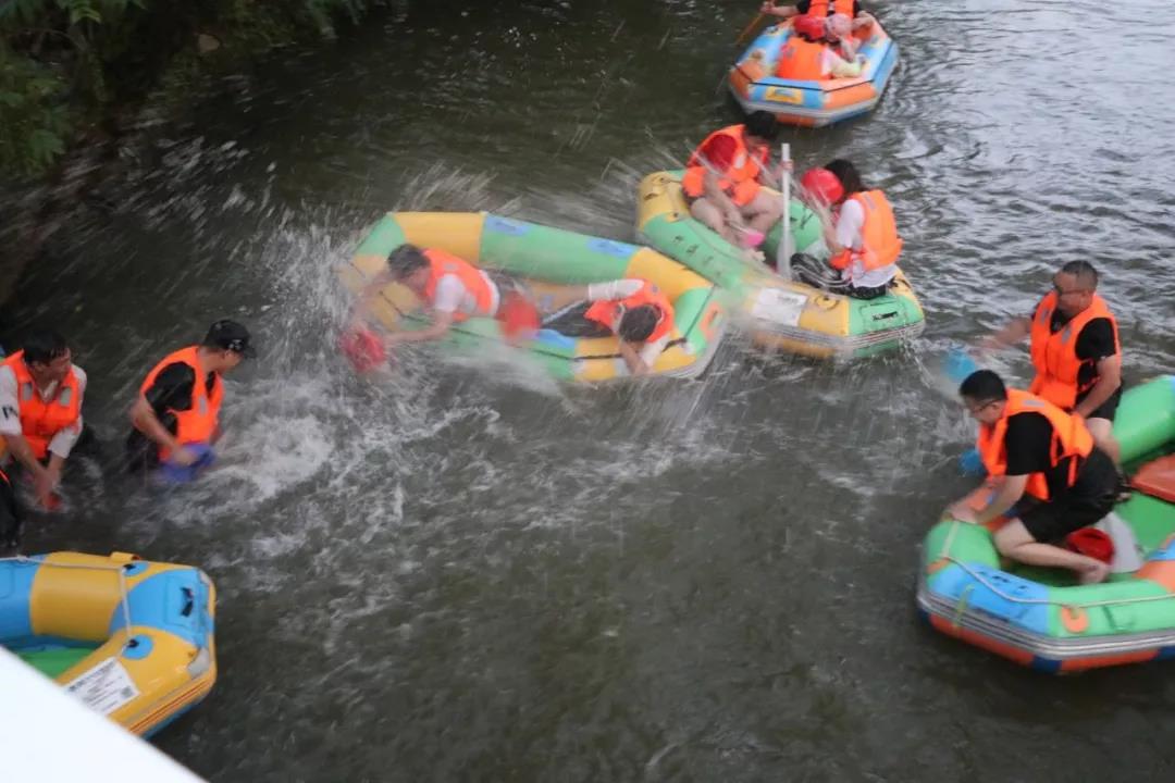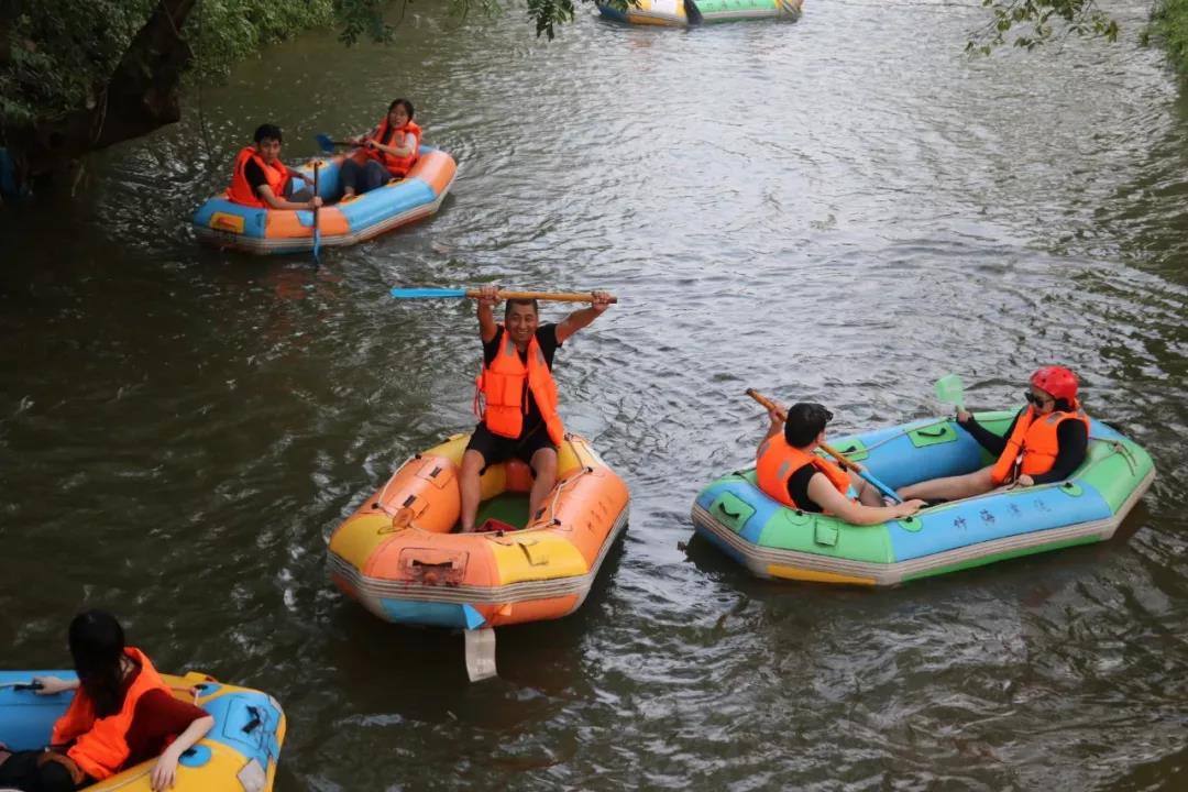 下午全體員工領好安全帽和救生衣,拿好船槳開始了竹海漂流活動,在時而湍急時而平緩的水流中漂流艇順流而下,同事們打起水戰,在驚險刺激的漂流中品味著江南小村莊的韻味,感受到了更多的刺激和歡樂。